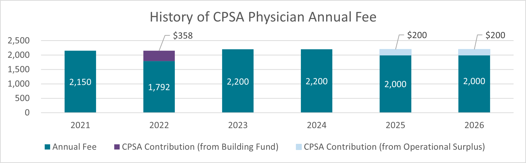 In 2022, we saw the subsidization of annual fees from CPSA’s Building Fund Reserve toward CPSA operations. In 2026, as in 2025, CPSA will subsidize annual fees by drawing down on surplus funds and operating at a deficit for the year. Surplus funds accumulated as a result of higher than forecasted membership numbers and lower than budgeted operating costs in prior years.